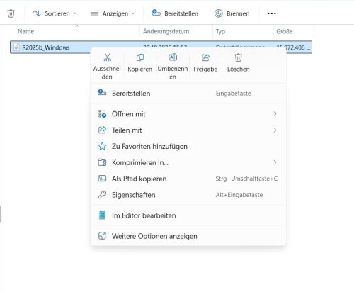2. Laden Sie die Datei herunter und sichern Sie diese in einem Ordner. Klicken Sie mit der rechten Maustaste auf die Datei und wählen Sie anschließend „Bereitstellen“ aus.