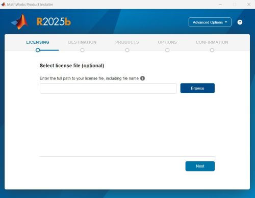 5.Der Matlab-Installer wird gestartet. Bitte wählen Sie unter „Advanced Options“ die Option „I have a File Installation Key“ aus.