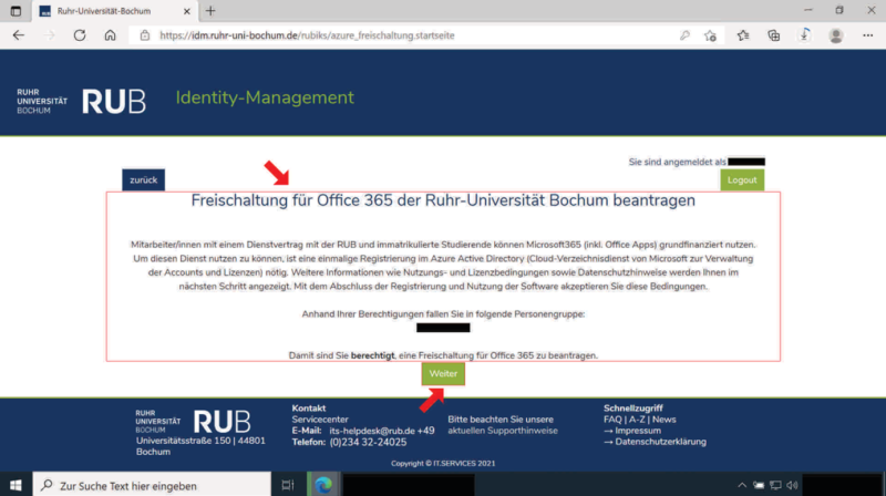 Öffnen Sie die Registrierungsseite https://idm.ruhr-uni-bochum.de/rubiks/azure_freischaltung.startseite in einem neuen Tab.